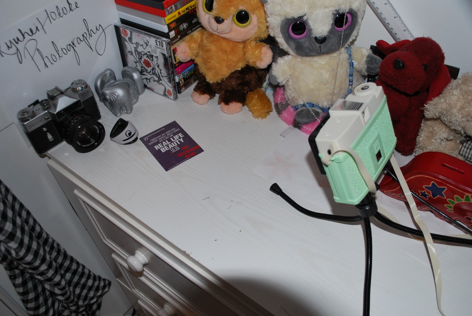 i also set my plastic beauty on top of a bendy tri-pod and slot on the cabel release collar, to keep the shot still.